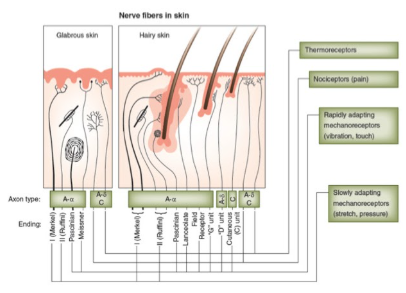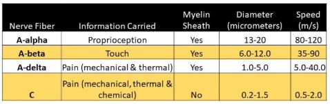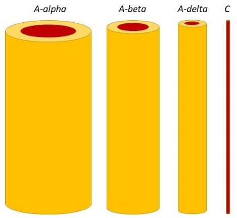 C fibers can be myelinated or unmyelinated and have sensory (warm perception and pain) and autonomic functions (blood pressure and heart rate regulation, sweating, etc.).