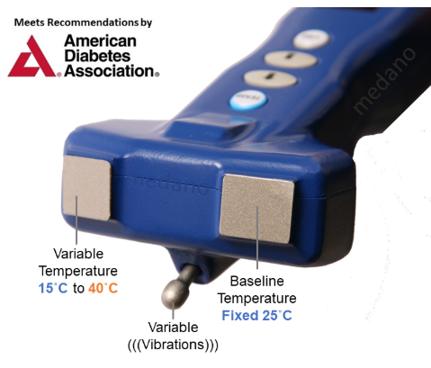 The Diabetic Neuropathy Device™ (DND) aligns with the latest screening and diagnostic recommendations from the American Diabetes Association (ADA). As the only tool capable of screening for distal symmetric polyneuropathy (DSPN) by assessing both temperature sensitivity (small fiber function) and vibration perception (large fiber function), the DND sets a new standard in neuropathy diagnostics, as emphasized in the ADA’s Diabetic Neuropathy: A Position Statement by the American Diabetes Association.
